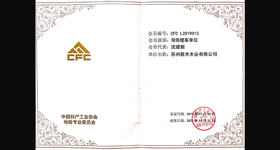 中國林產(chǎn)工業(yè)協(xié)會地板專業(yè)委員會常務(wù)理事單位