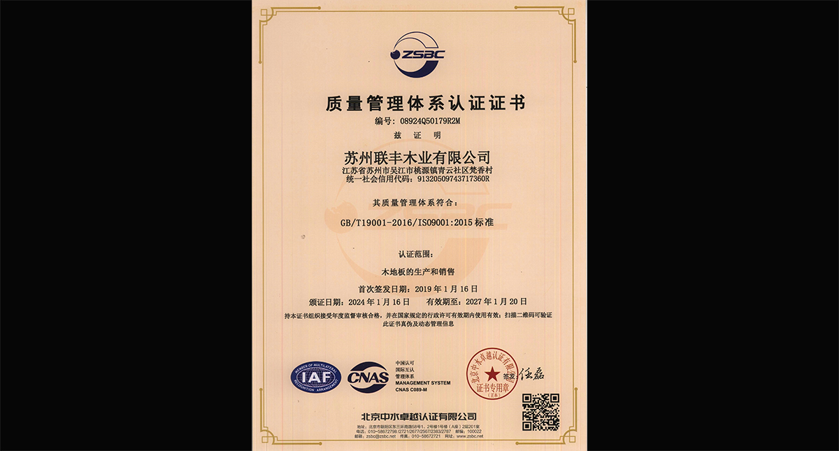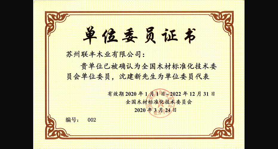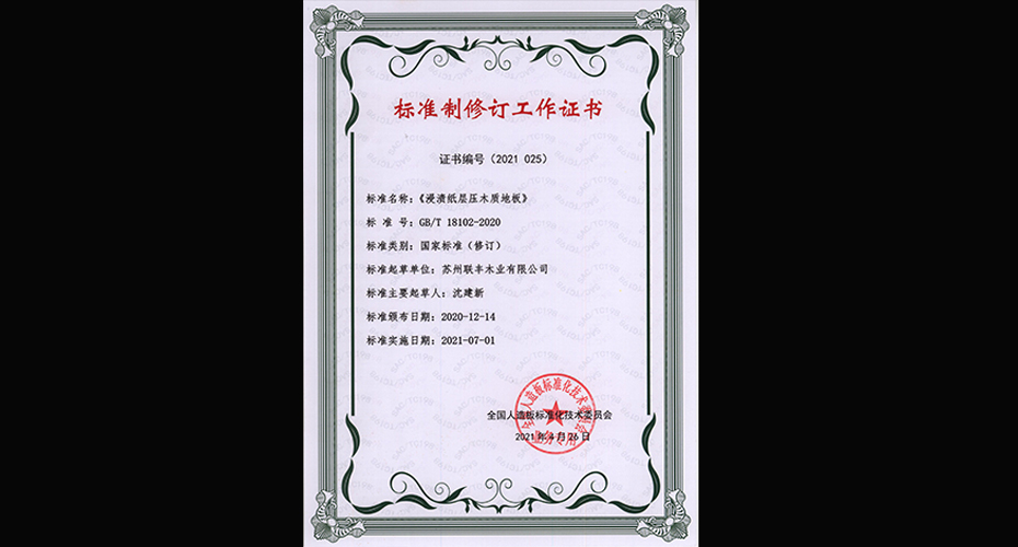 浸漬紙層壓木質(zhì)地板標準制修訂工作證書