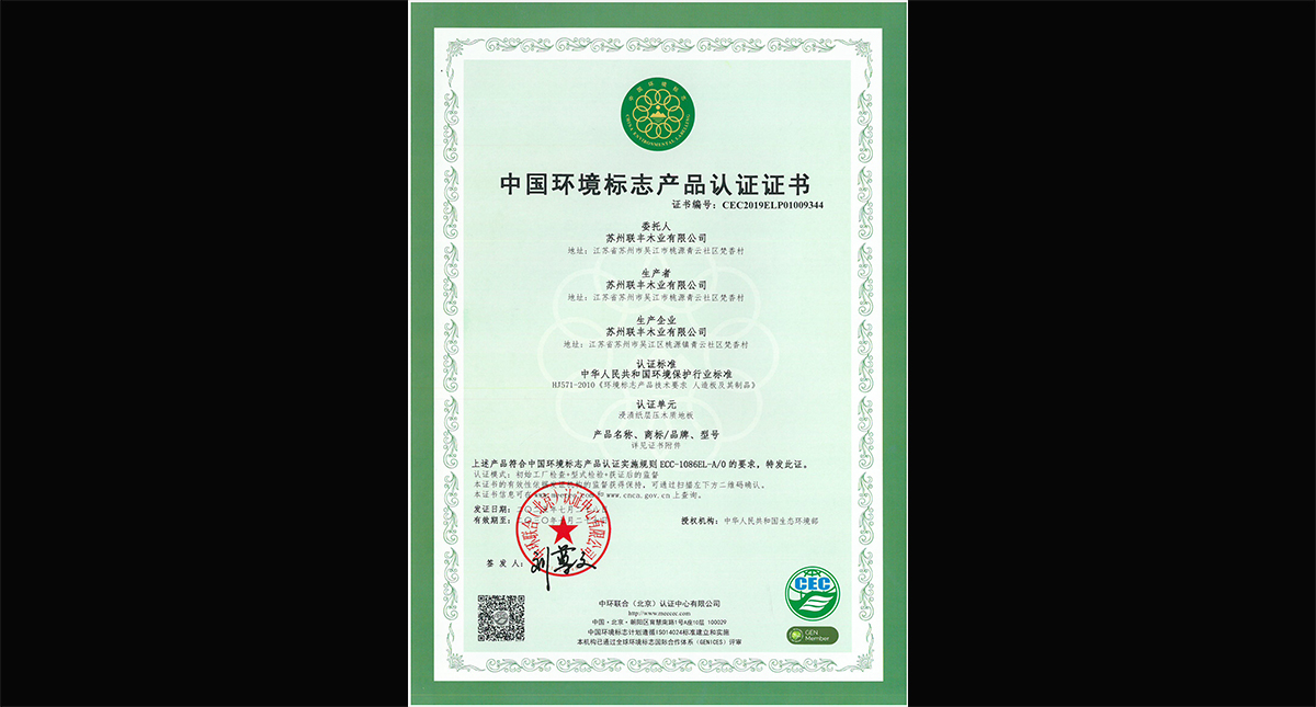中國環(huán)境標志產(chǎn)品認證證書(實木復(fù)合)